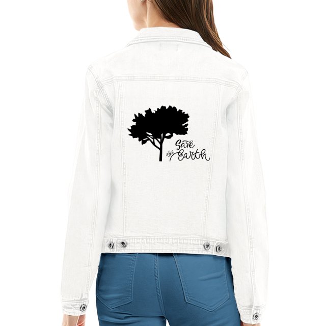 Let’s Grow Together Ladies’ Denim Jacket with Fleece Hoodie – Earth Print Stuff – Ecology Gift